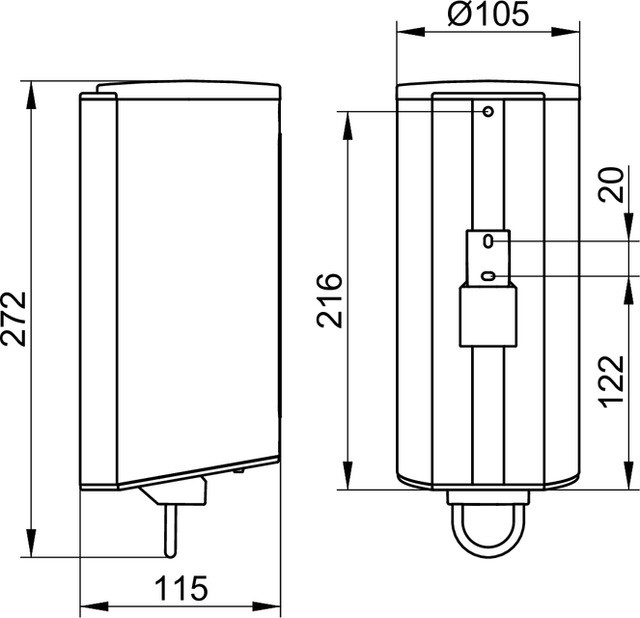 Füllmenge 1100 ml, Dosiermenge 0,5 ml/Hub, Betätigung von unten, Befüllung von oben, Sichtschlitz für Füllstandsanzeige, verdeckte Befestigung, zum Schrauben, mit Befestigungs-Set
