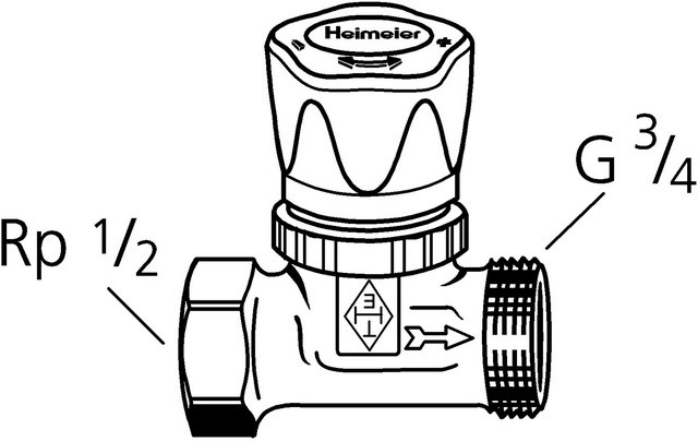 Heimeier Vorlauf-Regulierventil Durchgang, Anschluss Rp 1/2 Muffen-Innengewinde, mit Handregulierkappe