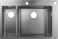 hansgrohe Einbauspüle S712-F655 180/450, 735 x 480 mm, 1 Haupt-/1 Zusatzbecken, Hahnloch/Loch vorgebohrt